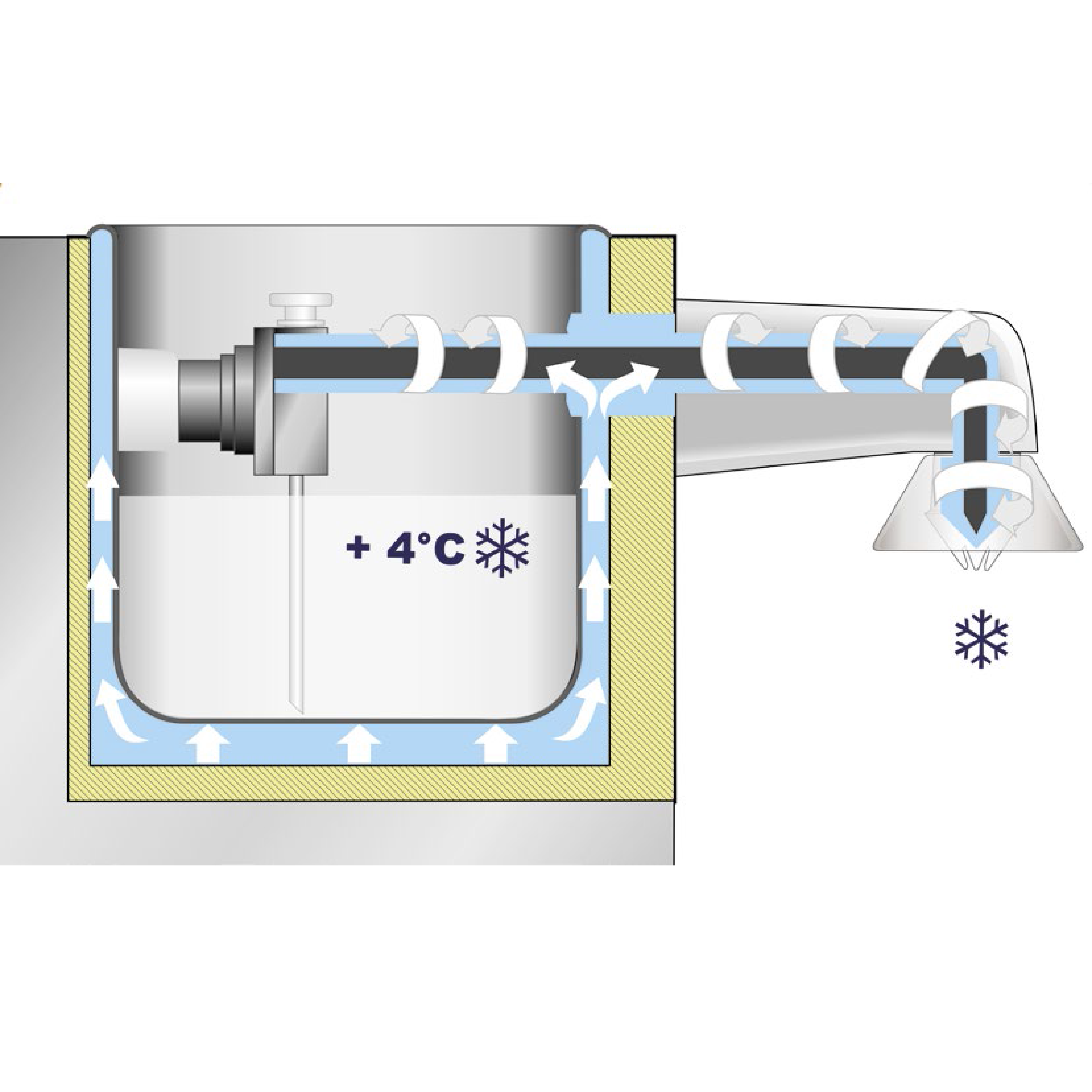 - Refrigerated dispensing nozzle at 4°C (39°F).
