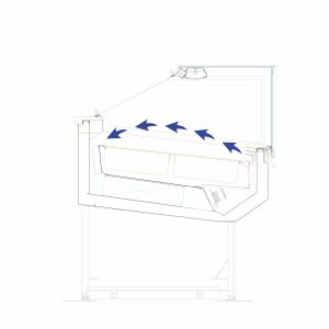 - Anti-condensation heated glass superstructure, vent-opening front glass, service side closure with wraparound curtain or sliding Plexiglass doors.