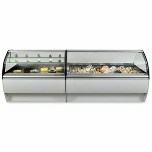 Display case model offering a wide range of services: from ice-cream. TWIST design represents the young, dynamic character of ItalProget.